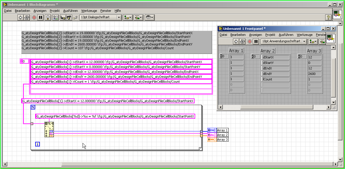 danke, das sieht gut aus. gleich nochmal nen paar fragen dazu: was ist das für eine umgebung, wo du die strings reingeschrieben hast - die kenne ich noch nicht (bin halt noch LabVIEW anfänger :/ )