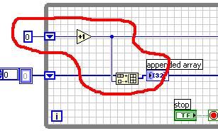 2. Was dir der Einfachheit halber genügen sollte, ist entweder erst mal nur ein Build-Array + Schieberegister oder noch einfacher, per Autoindizierung die For-Schleife selber das Array bauen lassen. Hierzu ein simples Bsp: