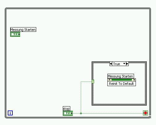 Ich bräuchte einen Schalter, der mir beim Klick ein True ausgibt, sich bei Beenden des Programms aber wieder zurück stellt. Konkret gehts um eine Druckmessung, die erst gestartet werden soll, wenn die gewünschten Temperaturen erreicht sind. Wenn ich das Messprogramm dann nochmal starte, geht die Druckmessung gleich bei Beginn los. Am besten wäre überhaubt nur ein Schalter, der beim ersten Klick die Druckmessung startet und beim zweiten Klick das Programm beendet.