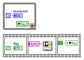 Indem du Arbeitsschleife und Dialog in eigenen, parallel laufenden Strukturen OHNE DATAFLOW-Abhängigkeit laufen lässt. Und eben ein Flag (lokale Variable, globale Variable, Melder, FGV, …) zum Datenaustausch benutzt!