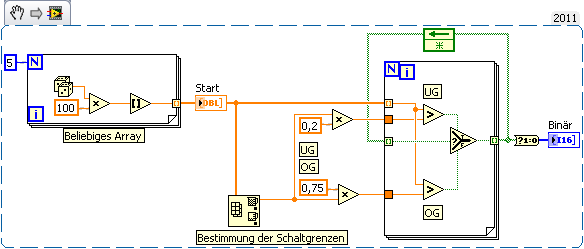 LabVIEW-Basics lernen, z.B. die Autoindizierung von Arrays in Schleifen...