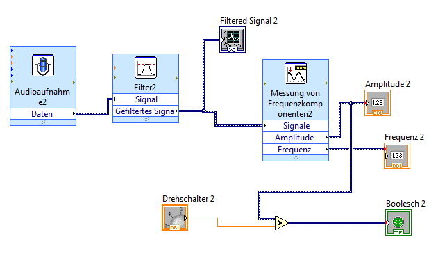 Ehrlich gesagt war ich gleich Feuer und Flamme dafür, da bei LabVIEW keine eigene Sprache (Syntax) erlernt werden muss und da auch Messgeräte implementiert werden können.
