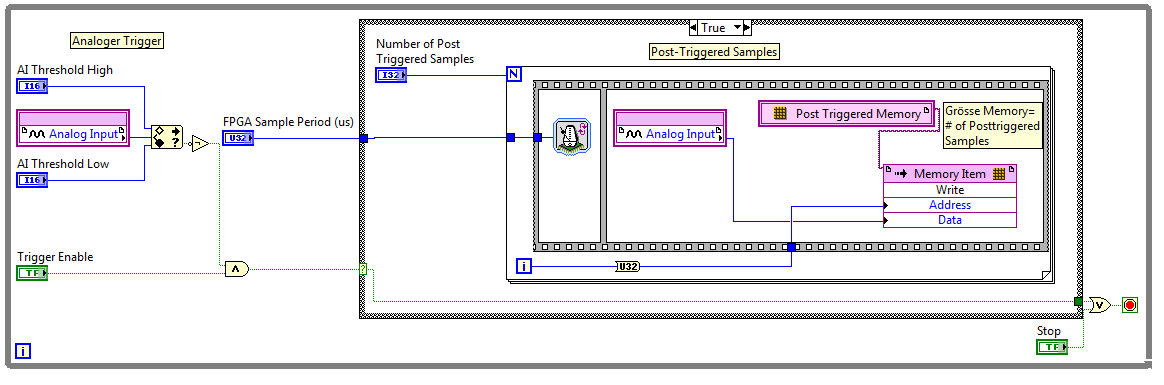 Am liebsten wäre mir, dass das CRio die Vor und Nachlaufzeit dem CRio übergeben werden und das FPGA dann die Daten aufzeichnet und dann bei einem Triggersignal die Daten an das Hostsystem sendet.