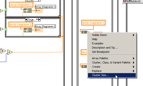 1. Casestruktur für alle möglichen Clustergrößen (vorsicht wenn du das Cluster dann an ein SubVI übergibst, dabei muss die Größe konstant sein, oder du machst eben auch ein polymorphes SubVI)