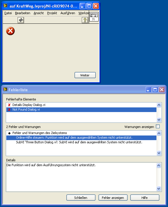 Gerade wieder was. Keine Ahnung, was mir LabVIEW bzw. die beiden Herren sagen wollen.