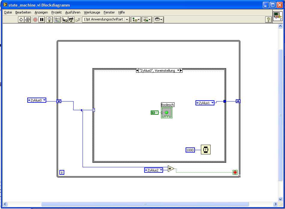 bei LV ist im Beispielfinder eine "Standard-State-Machine" mit dabei. Dazu gibt es noch zwei Varianten mit Datenflussorientierung und für die INteraktion mit einem Nutzer. Wenn du letzteres mit dem allerersten kombinierst, hast Du wahrscheinlcih das, was die meisten hier als State-Machine nutzen...