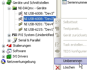 Ich weiß nicht, ob das mit den USB/RS232-Wandlern analog zu den DAQ-Geräte funktioniert. Die DAQ-Geräte kannst Du jedenfalls im Measurement&Automation Explorer (MAX) umbenennen.