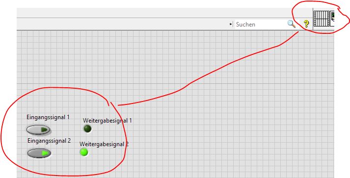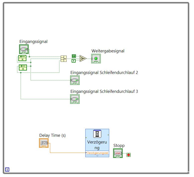 Jetzt hat man nämlich ein subVI (reentrant setzen!), welches in der Schleife des MainVIs aufgerufen wird. Diese Schleife im MainVI bestimmt dann die Iterationszeit und nicht mehr das subVI zum Prüfen der boolschen Werte…