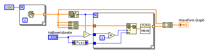 Das VI zum gleitenden Mittelwert habe ich hier aus dem Forum gezogen und müsste eigentlich funktionieren.