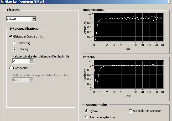 Geglättet sieht das schonmal gut aus, werde jetzt mal sehen ob ich das irgendwie auf LabVIEW 6.1 übertragen kann.