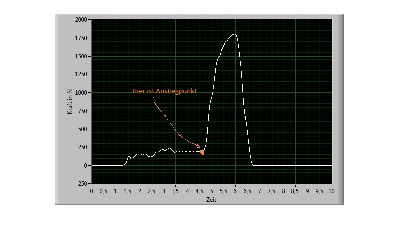 In der Biomechanik ist es wichtig diesen Punkt (Kraft anstieg) herauszufinden.