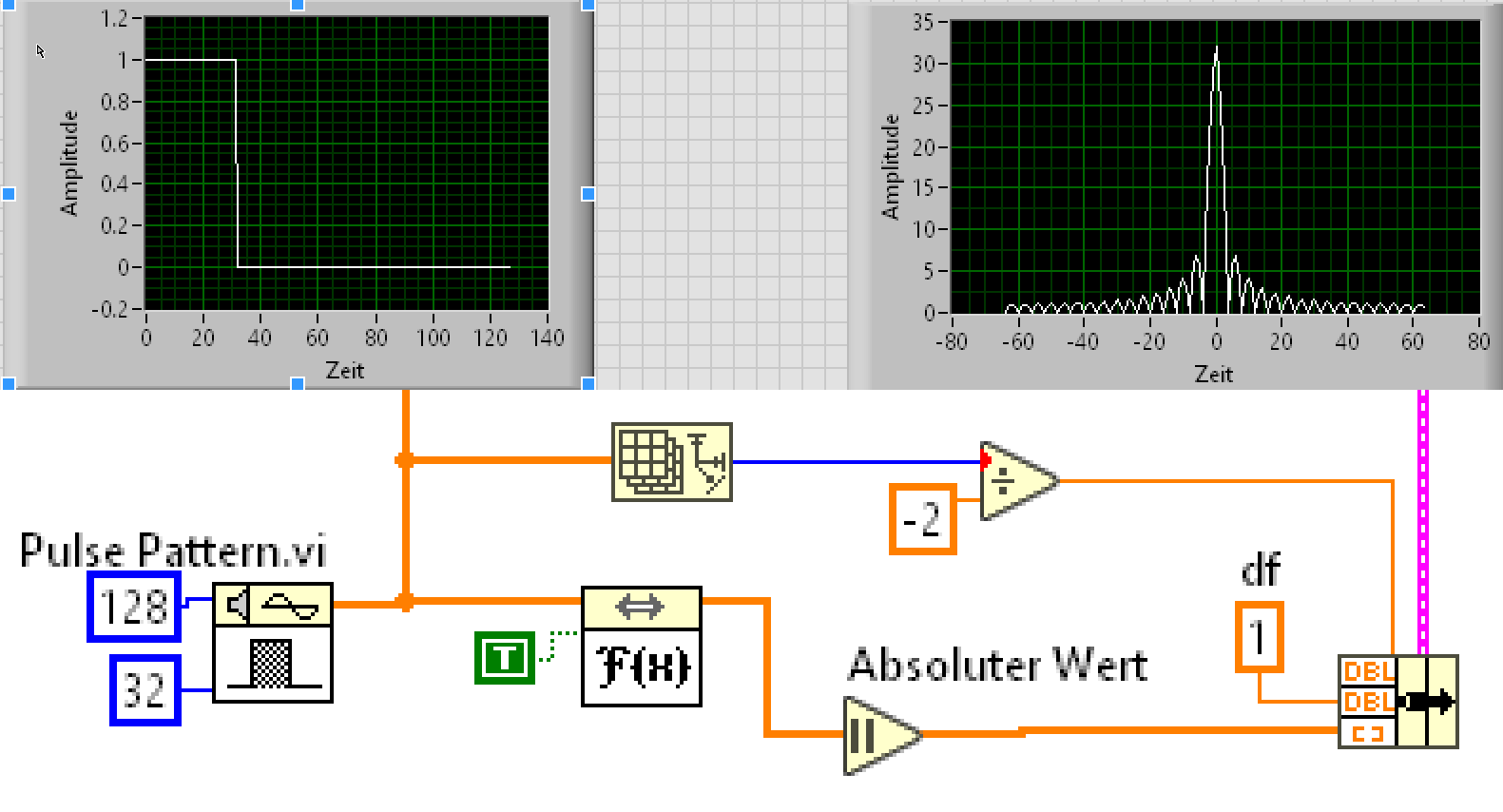 Ich kann Dir hier nur diesen Rat geben: Vergiss die Funktion FFT, und nimm die unendlich komfortableren Funktionen in Signalverlauuf/Messuungen, also z.B. die beiden Funktionen "FFT-Spektrum Betrag/Phase" oder "...Real/Imaginär". Ich würde sogar sagen, dass es bei deiner Aufgabenstellung auf das Leistungsspektrum ankommt. Dafür gibt es auch ein VI.