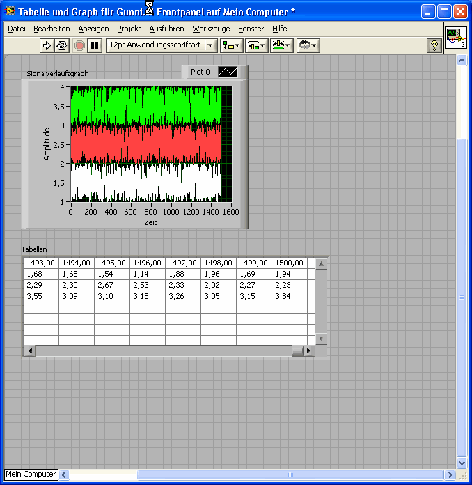 Einfach so bekomme ich weder in meinem VI beim Datenprotokollieren parallele eine Tabelle eingebaut, noch bei diesem obigen Beispiel-VI zum auslesen der Werte.