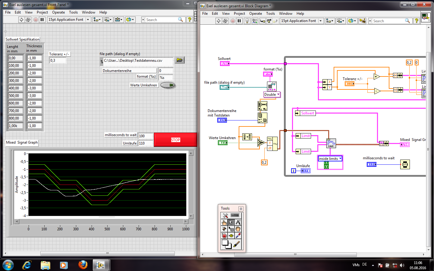 Ist es überhaupt möglich später beides (Toleranzfenster und durchlaufendes Sígnal) in einem Chart darzustellen?