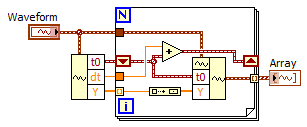 Ich finde keine Funktion die es ermöglicht die Werte von einer Waveform einzeln darzustellen ohne das ich die Waveform in ein Array umwandweln muss. (Das Programm welches später mit dem Signal arbeitet akzeptiert nur einen Datenfluss als Waveform.)