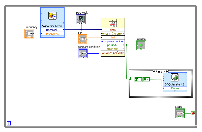 Was könnte man ändern? Eine Idee: Parallel und unabhängig laufende Prozesse programmiert man in LabVIEW auch gerne parallel, also in zwei unabhängigen Loops: