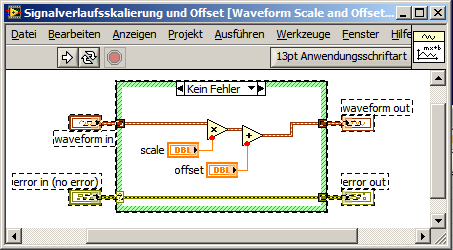 Aber es geht sogar so, wie ein Blick in das Innenleben des VI "Signalverlaufskalierung und Offset" offenbart: