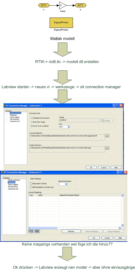 aber so ganz raff ich das net. hab jetzt mal das modell mit dem probe block und den sit i/o s bestückt und versucht es in LabVIEW zu starten ohne erfolg. hab keine mapping einträge. hab mal nen bild gemacht. bin leider LabVIEW neuling und deshalb wie ich vorgehen muss.