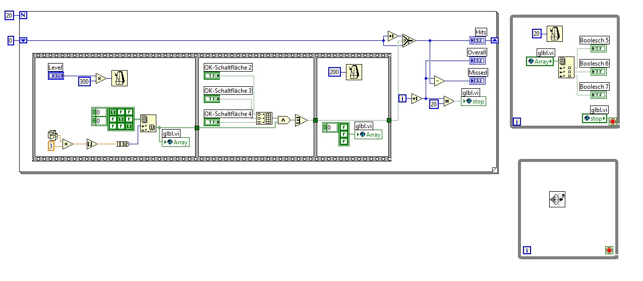 Du brauchst also eine Kontrolle, ob der richtige Button gedrückt wurde (ist glücklicherweise schon vorhanden) und musst anhand dessen Beep aufrufen oder auch nicht (Case-Struktur würde sich anbieten...)!