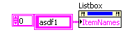 Über die Porperty Node "ItemNames" kann man String ins Listenfeld schreiben.