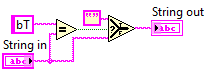 Nun möchte ich gerne, dass Labview jeden String der ankommt prüft und jeden String der "bT" lautet verwirft. Ich habe leider keine Funktion für solch eine "Weiche" gefunden.
