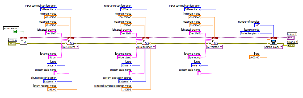 ich glaube Ihr habt mein Problem nicht verstanden. Ich möchte gleichzeitig Spannung, Strom und Widerstand an verschiedenen Kanalen messen, dafür gibt es in DAQ entsprechende Einstellungen.