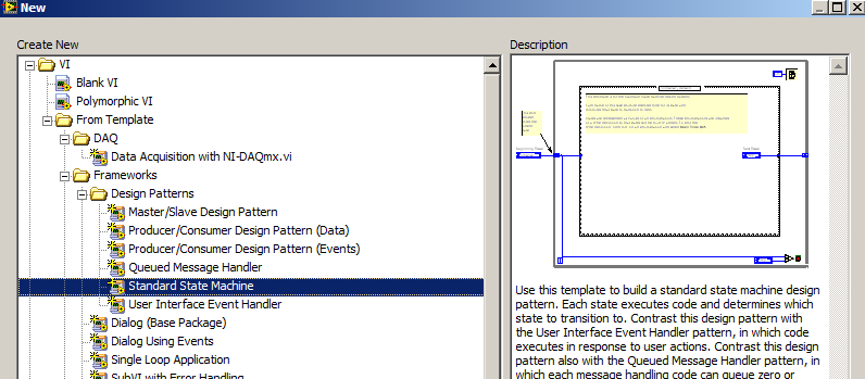 Muster für State-Machine, zu finden unter File -> New...: