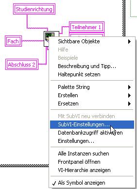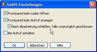 Nach drücken des Buttons "Benutzerdaten" soll sich das SubVI öffnen und dann wieder schließen lassen. Das funktioniert soweit auch ganz prima.