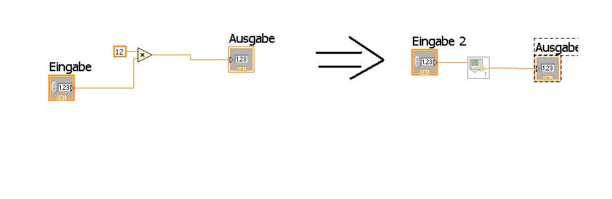 Der Linke Teil meines Bildedesist der Quelltext sozu sagen aus díesem mache ichdann ein SubVI welches ich dann ansteuere (Siehe Rechter Teil des Bildes)
