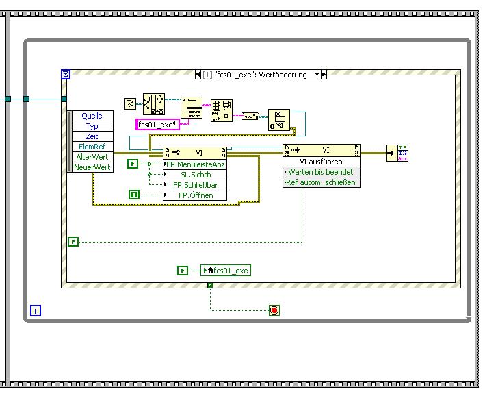 Ich habe ein MainVI, das insgesamt 4 SubVI's mit deren Frontpanels aufruft. Die Besonderheit liegt darin, dass das MainVI automatisch immer die neuste Version des jeweiligen SubVI's findet und lädt. Außerdem muss aus simulationstechnischen Gründen das MainVI die ganze Zeit über bedienbar sein. Auch wenn die SubVI's gerade am Laufen sind.