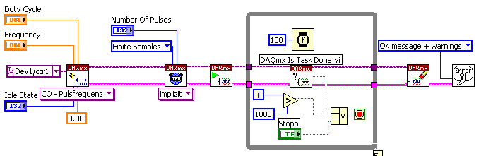 Ich habe ein Vi das mainvi, das ein subvi startet und mir eine gewisse anzahl von rechteckimpulsen über den counter-ausgang meiner NI-Card schickt.