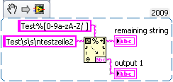 (output1 = "\s\s", funktioniert aber genauso mit Eingangsstring "Test\s\ntestzeile2" und output1="\s")