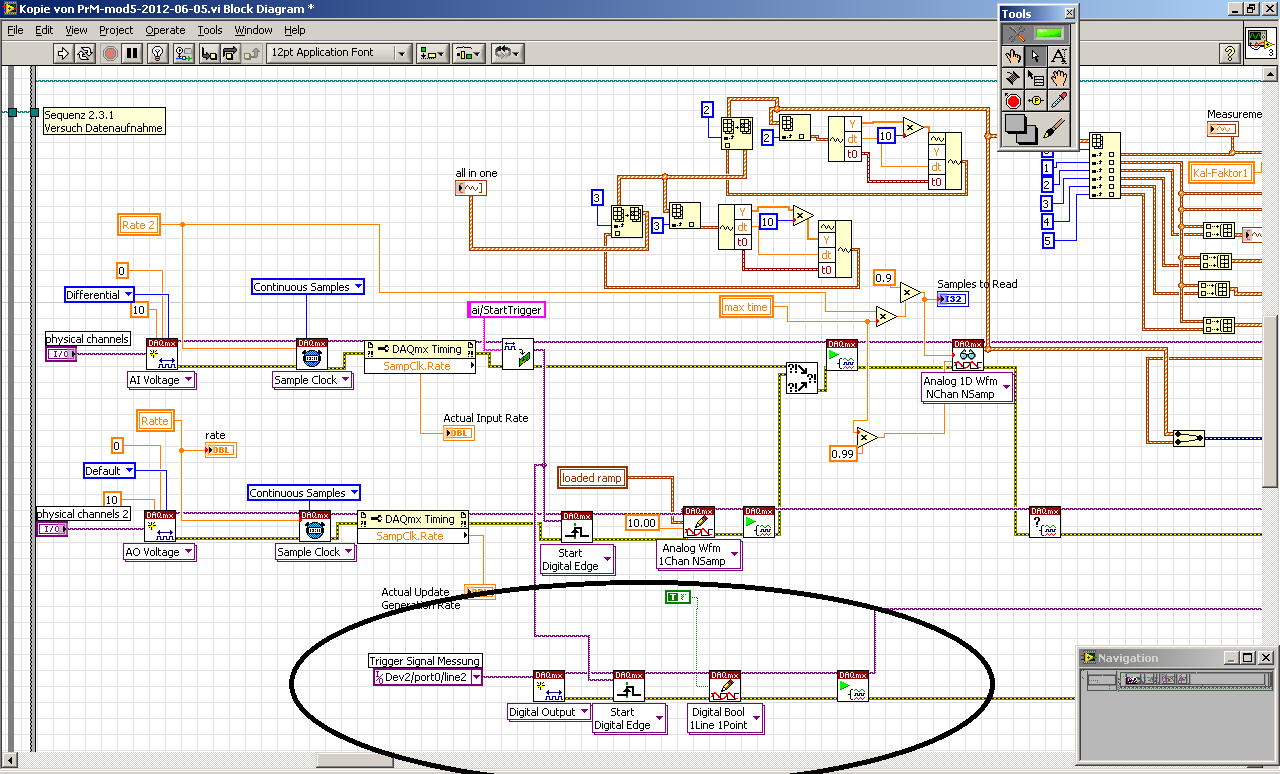 Das 2. hab ich mal versucht umzusetzen liefert mir allerdings leider eine Fehlermeldung. Ich habe Bilder vom Aufbau angehängt sowie auch die Fehlermeldung. Der Teil in den schwarzen Ellipsen ist der von mir zur Triggerung hinzugefügte Teil. Gibt es da grobe Fehler, sodass es daran liegen könnte?