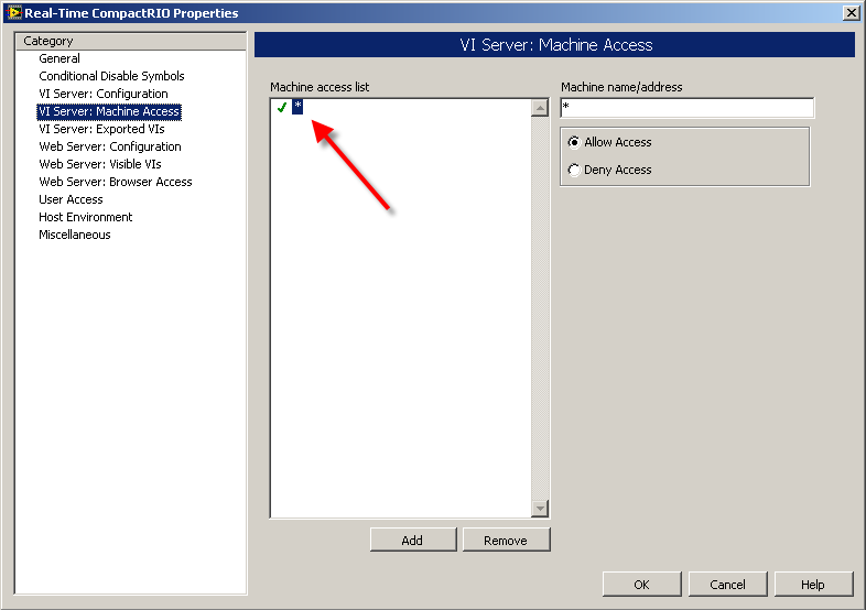 a) der Zugriff auf den VI Server über TCP/IP (was durch VISA abstrahiert wird ...) ist nicht aktiviert. Abhilfe: einen Haken setzen
