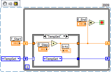 Aber, ich lege ja die Temperatur auch auf ein Schieberegister, damit diese immer hochgefahren werden soll. In dem Case, wo dann aber die Messung stattfinden soll, wird allerdings nur der Strom hochgeregelt und ich habe keine Temperatur, die ich wieder auf das Schieberegister geben kann (das orangene Quadrat hat ein kleines weißes Quadrat) und das VI läuft nicht ..