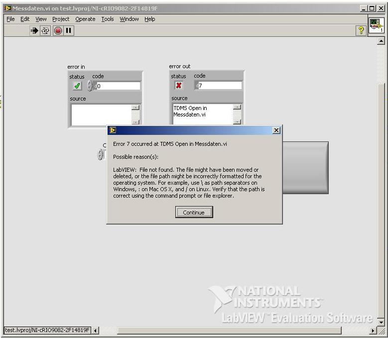 Allerdings erhalte ich jedes mal eine Fehlermeldung von TDMS open.