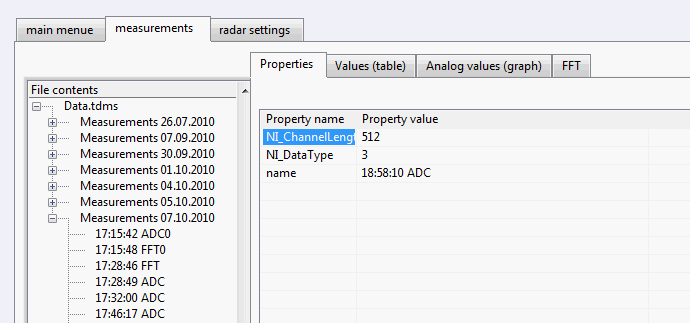 Mit dem TDMS Viewer stelle ich meine Daten wieder dar. Leider werden meine Eigenschaften (scheinbar) nicht mitgespeichert.