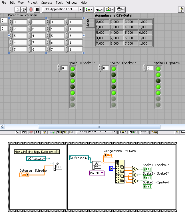 Wenn ja, dann kannst Du die Tabellen (Arrays) im Blockdiagramm direkt an die Vergleichsoperatoren anschließen.