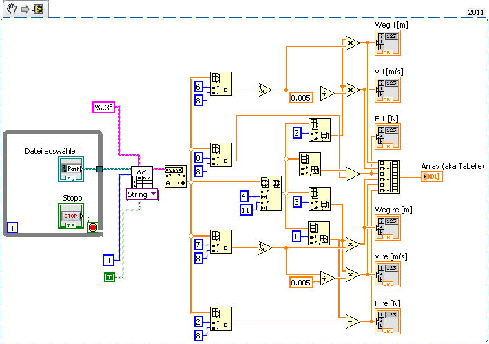 Sorry, sollte eigentlich kein Drängeln sein. Hatte nur die Idee dass das mit der Datei so gehen könnte und wollte fragen ob das schon die Lösung ist. Also die einzelnen 2D-Arrays in eine (immer gleiche) Datei zu exportieren, um dann dort alle Spalten (F li, Fre, Weg li, Weg re, v li, v re) in einer Datei zu haben und diese dann als Tabellenkalkulation auslesen zu können!
