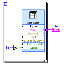 So. Nun zu deinem Programm. Du nutzt ein ExpressVI in das, außer dir, keiner rein schauen kann. Du möchtest einen Table erstellen und diesen mit zufälligen Werte füttern. Vollkommen oke und auch richtig so. Allerdings solltest du das erstellen außerhalb der Schleife tun, so erstellst du ja jeden Schleifendurchlauf ein Table, das ist so bestimmt nicht gewünscht.