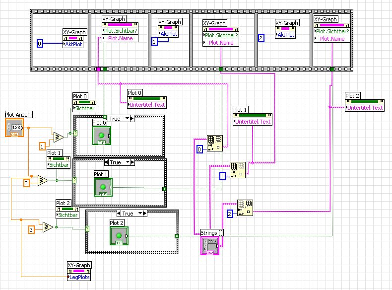 3. Ich möchte die einzelnen Plots durch Knopfdurck jeweils sichtbar und unsichtbar machen können. Mein Aufbau im Bild läuft wunderbar, aber ist mir dann für 10 oder mehr Plots einfach zu groß! Geht das irgendwie einfacher? das Problem ist eben das es immer nur einen aktiven Plot gibt den ich bearbeiten kann und deswegen benötige ich die sequenz oder?