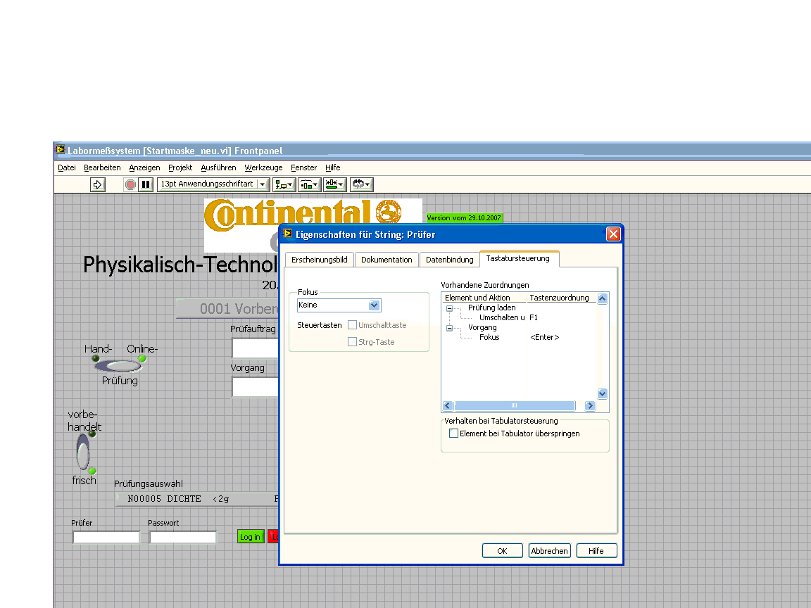 rechts ist eine liste mit allen bestehenden tastatursteuerungen. bei dir gibt es also zwei. Zum einen "Prüfung laden" ich vermute ein button. das drücken von F1 bewirkt, dass der wert des buttons umgeschaltet wird. Zum anderen reagiert das programm auf die ENTER-Taste, indem es dem element "Vorgang" den Fokus gibt.