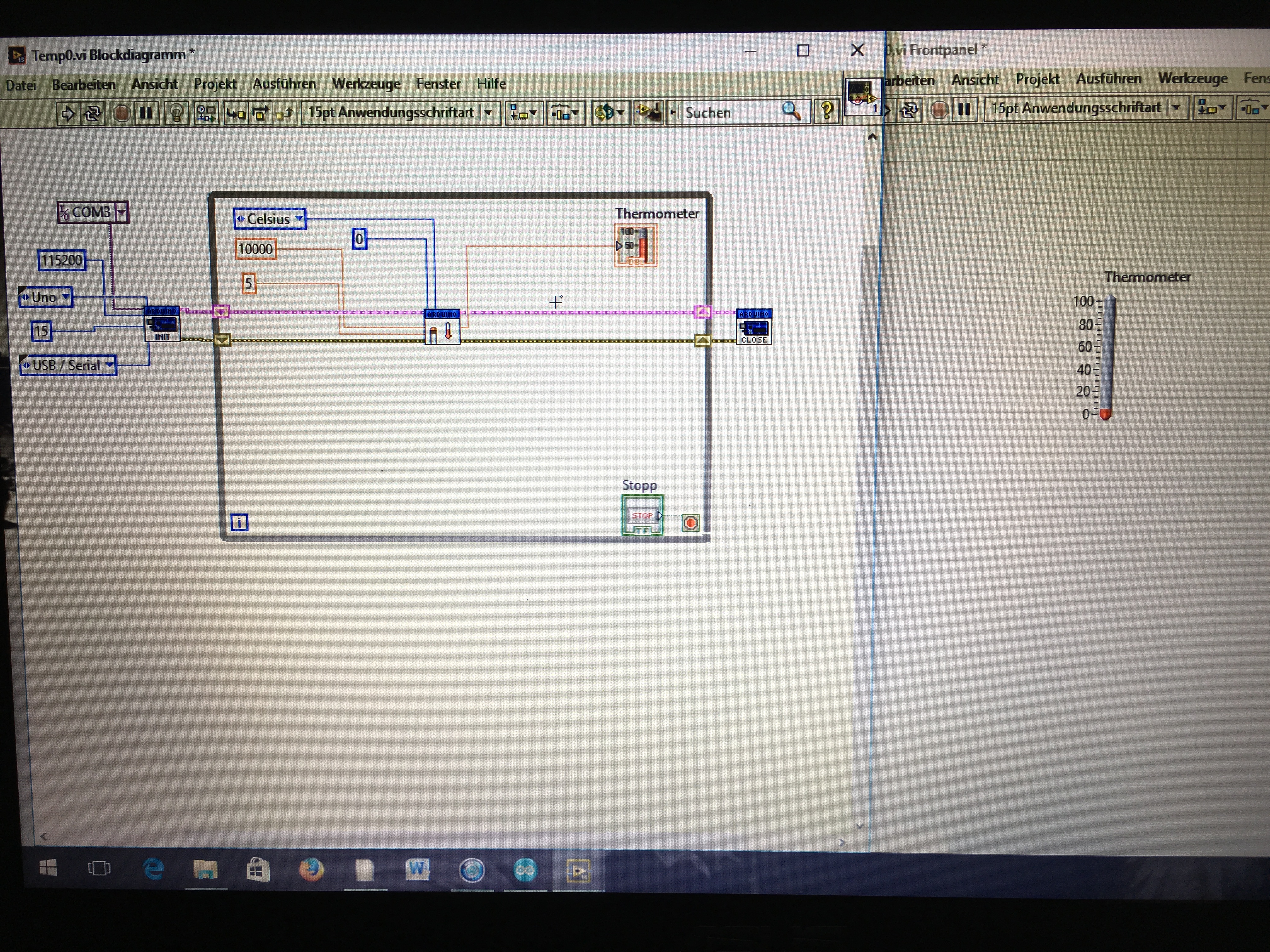 Ich wollte mit einem Arduino UNO die Temperatur messen und den Temperaturverlauf mit LabVIEW aufzeichnen.