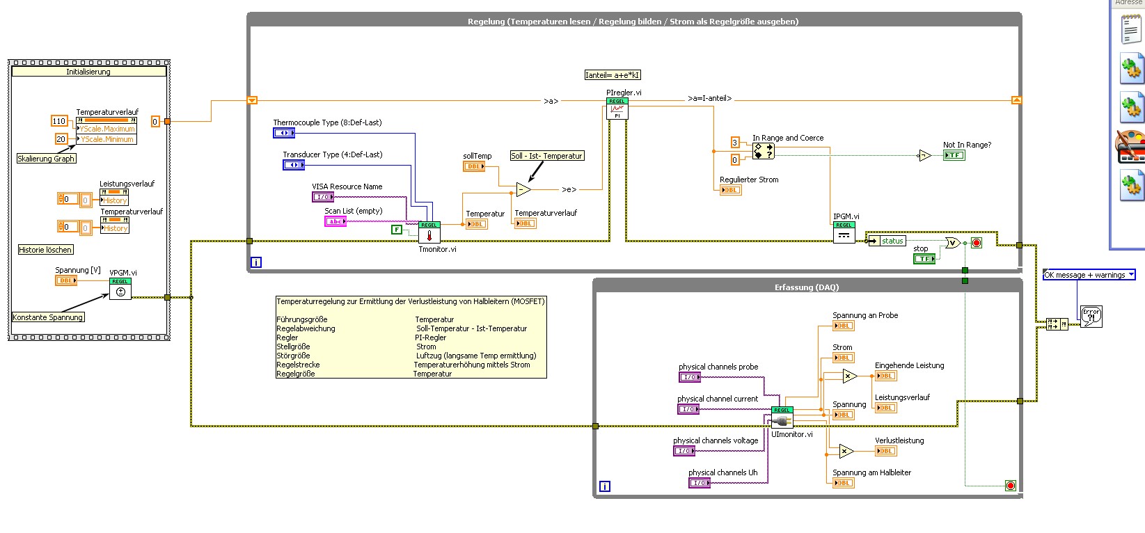 Es hat soweit auch schon einigermaßen funktioniert allerdings hatte ich im VI alles einfach hintereinander gebaut und man konnte deshalb keine Zeiten festlegen wie oft etwas passiert bzw nachgeregelt wird da in dieser Schleife auch ausgelesen und initialisiert wurde.