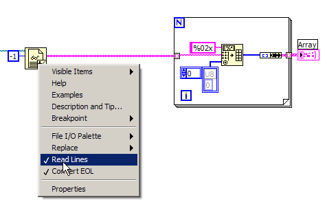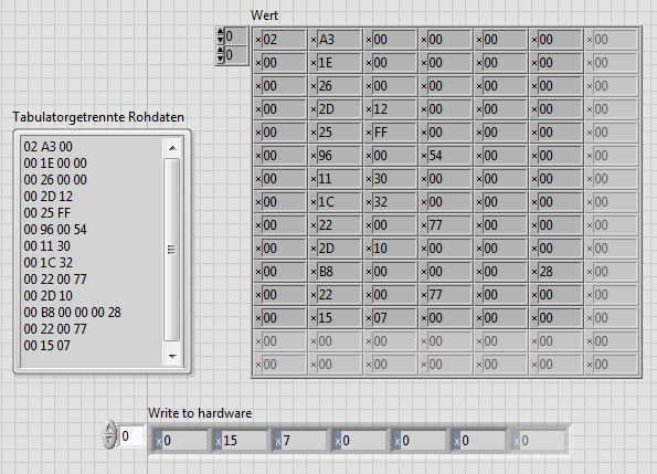 ich stehe gerade beim Versuch Hex-Werte aus einem File einzulesen und Zeilenweise als 1D- ByteArray an Hardware weiterzugeben auf dem Schlauch.