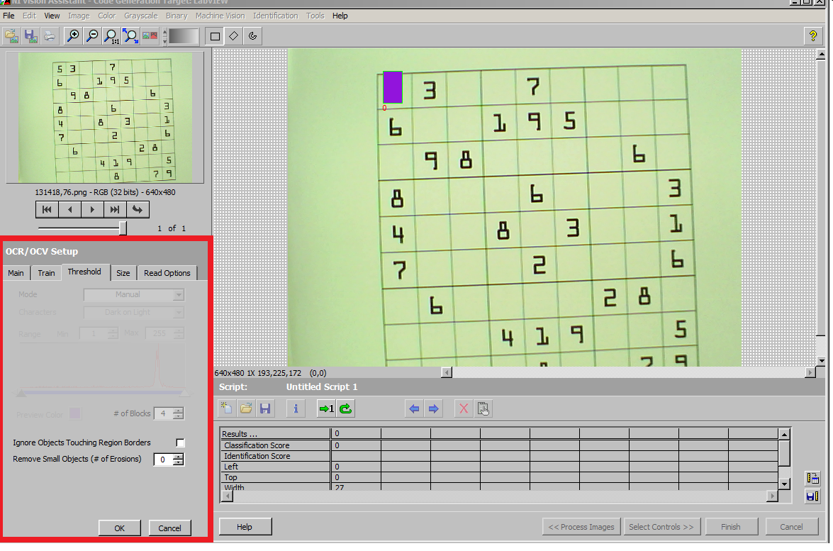 Threshold im OCR-Setup gesperrt |