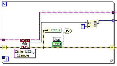 Ich habe jetzt die Initialisierung und das Schließen der Karte außerhalb von der Schleife gemacht und habe auch die Abtastfrequenz und die Anzahl der Messwerte gleich im Sample Clock definiert.