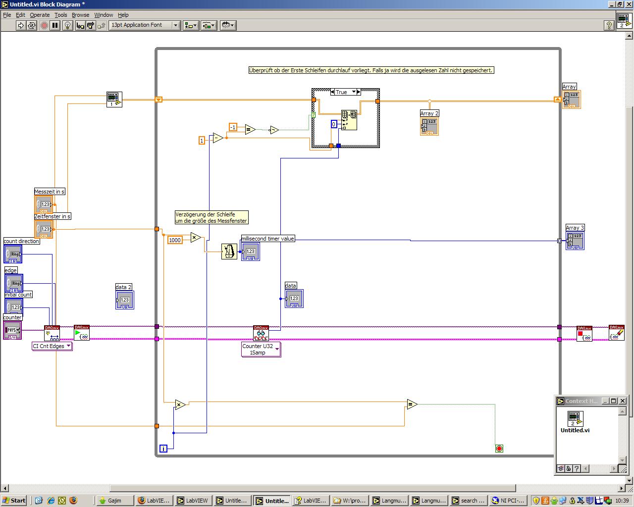 Zur Zeit gebe ich mit einem Freuqenzgenerator TTL Signale auf die Messkarte ab einer Freuqeunz von etwa 1kHz fällt auf, dass das zweite Auszählen scheinbar zu einem Willkürlichen Zeitpunkt erfolgt obwohl es erst nach der vorgegeben Messzeit erfolgen soll. Das interesante ist, es liegen immer zuwenig Messwerte vor.