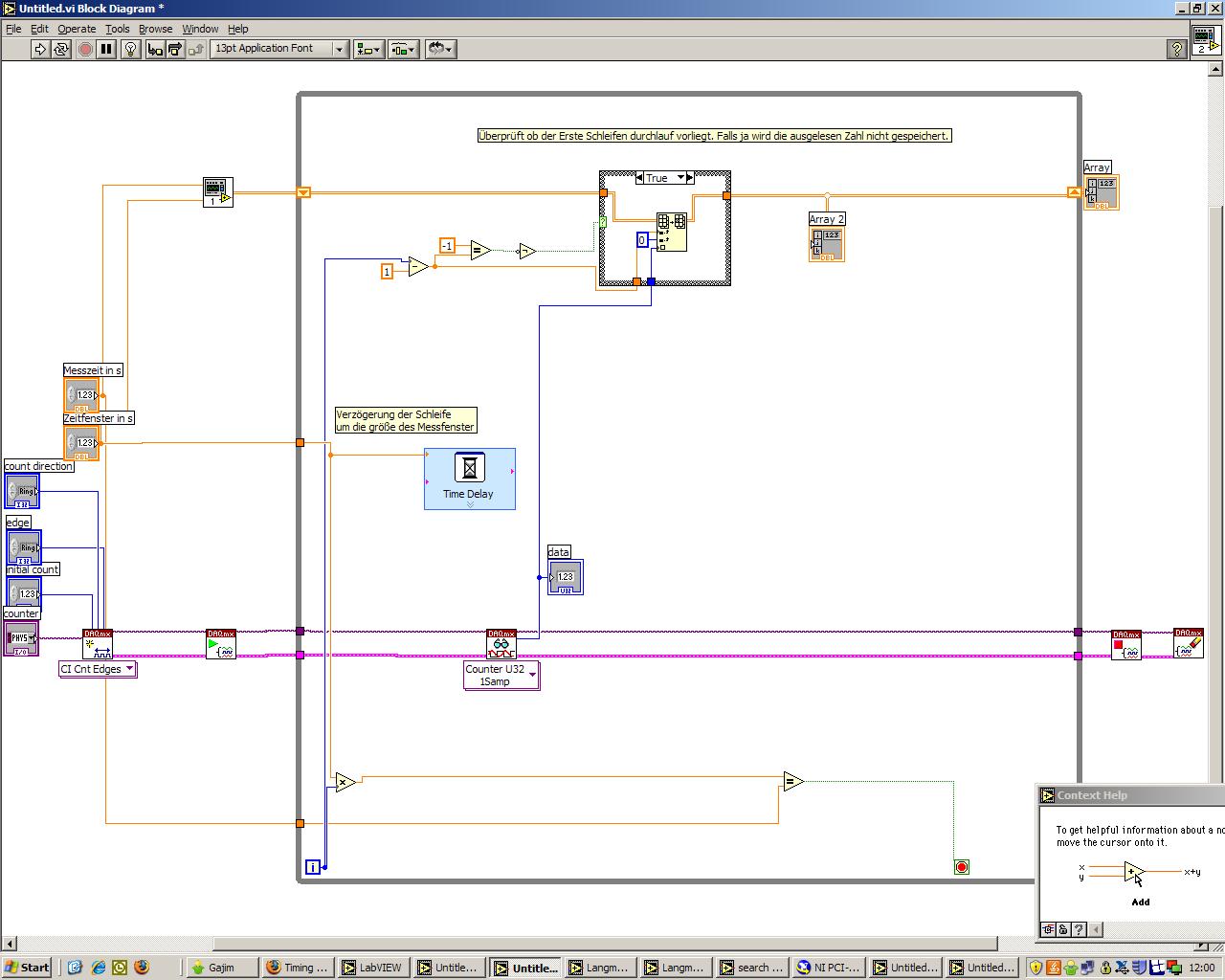 Ich benutze jetzt die Timed While Schleife, damit schein zumindestens das Problem was oben angesprochen wurde behoben zu sein, das Programm wartet die richtige Zeit zwischen dem ersten und dem zweiten Durchlauf der Schleife ab.
