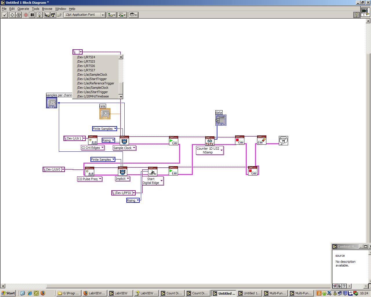 Neues Problem ist jetzt: Wie kann ich einstellen, dass die Obere Sampelclock den Kanal: "dev/ctr0internaloutput" benutzt, in dem drop down menü kann ich es nicht finden, im Exampel steht es aber im Menü dabei.